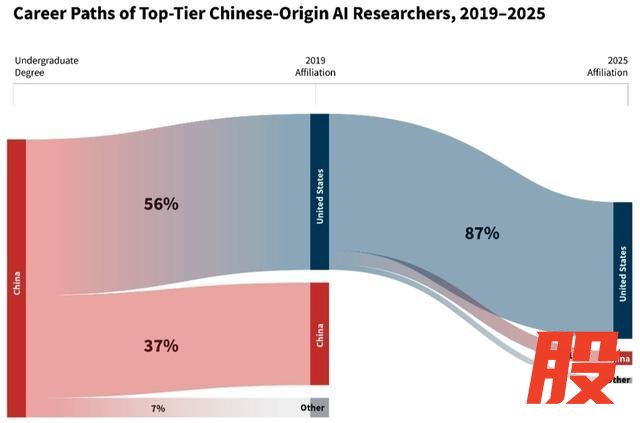▲2019–2025年,顶尖中国籍AI研究人员的职业路径